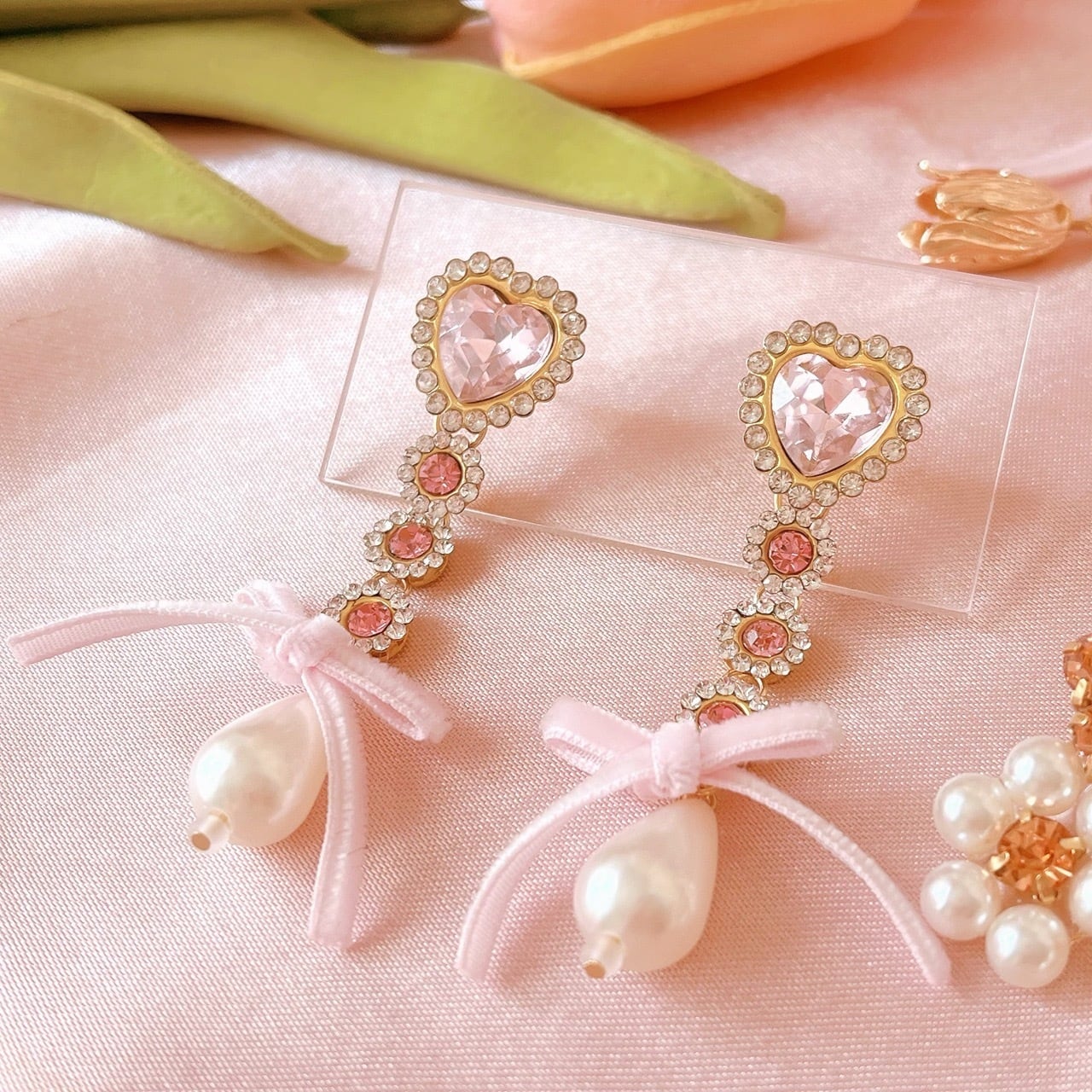 イヤリングは耳が痛くなりにくいクリップタイプのものを使用しています。(個人差がございます)